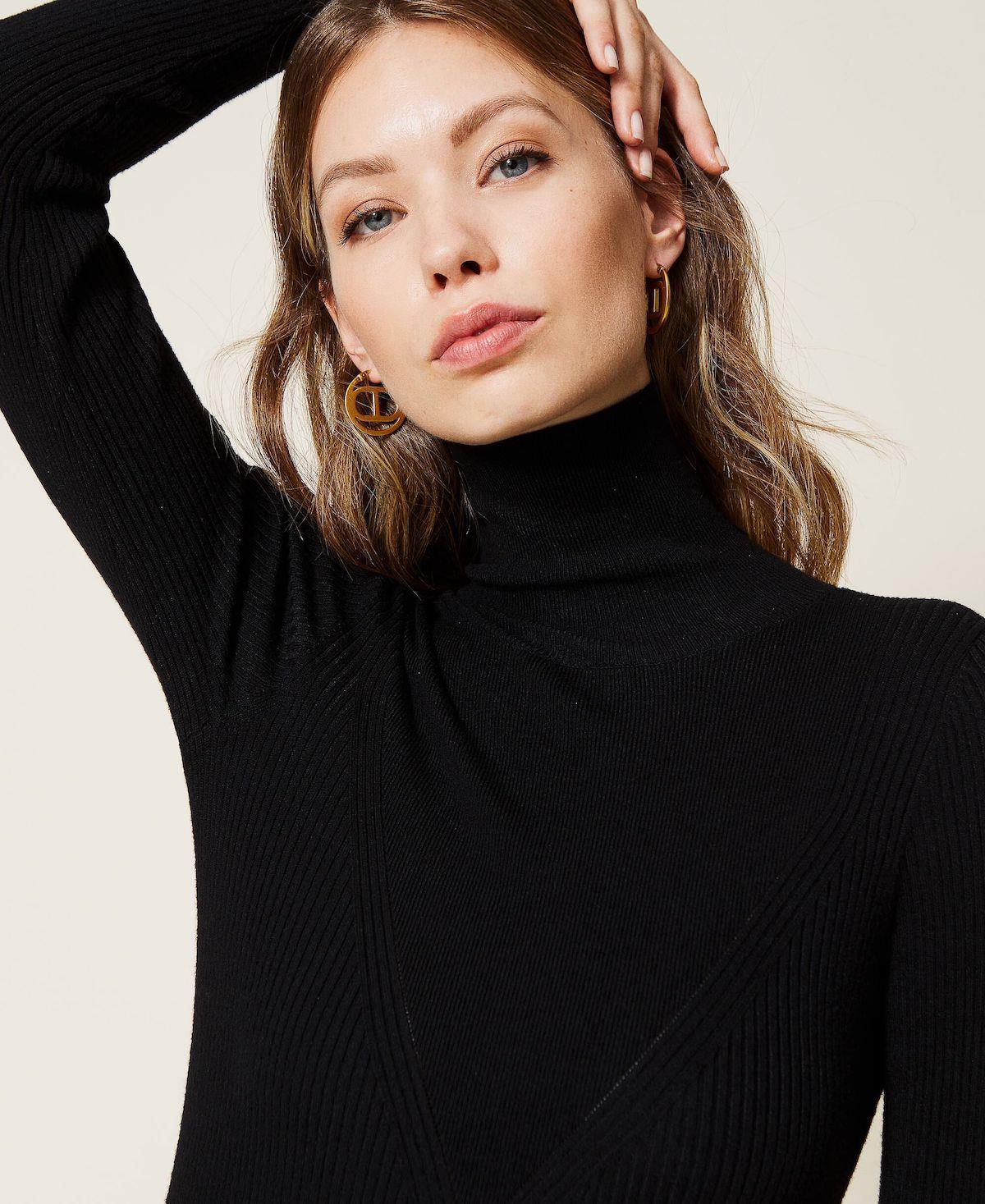 Realizzato in punto maglia di viscosa questo abito Twinset che ti renderà un'icona di stile ed eleganza . Design flattering , taglio svasato con flessage al fondo , collo alto a lupetto e manica lunga . Sarà il protagonista di ogni look serale accompagnato da tacchi alti , con sneaker e anfibi per un outfit dal twist particolare nella quotidianità.