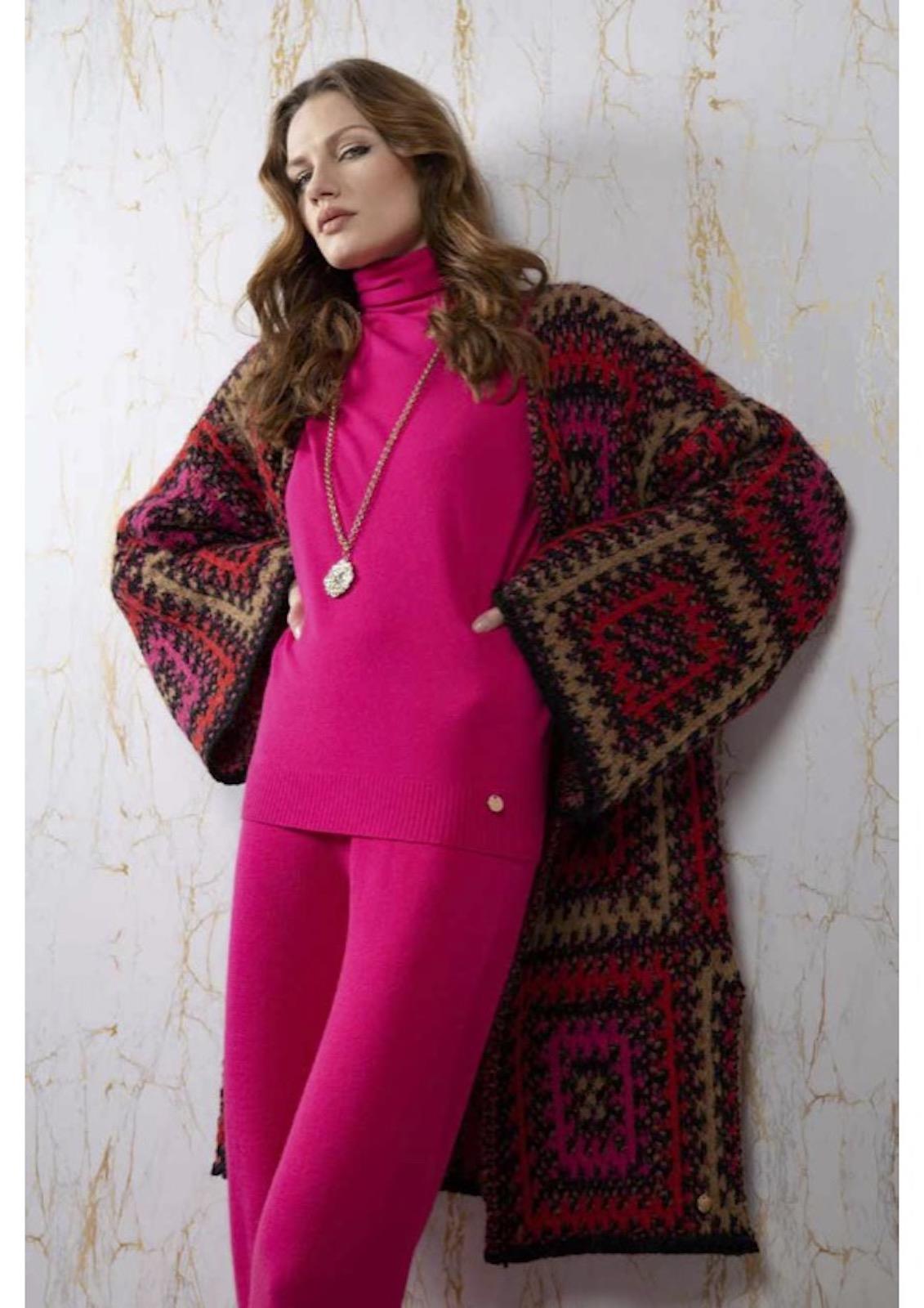 La chiave di un look femme fatale questo cardigan lungo firmato Linea Cinque con lavorazione all'uncinetto . Senza bavero , manica lunga e tondino in metallo con logo; queste le caratteristiche di un capo dalla bellezza intramontabile . Perfetto in città , al lavoro e nel tempo libero per affrontare le rigide giornate d'inverno con un tocco etnico.