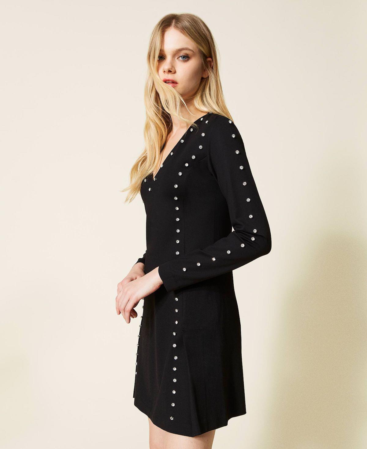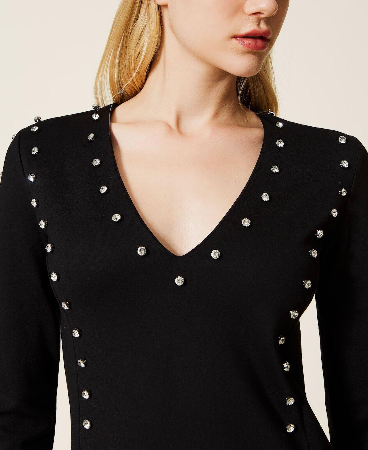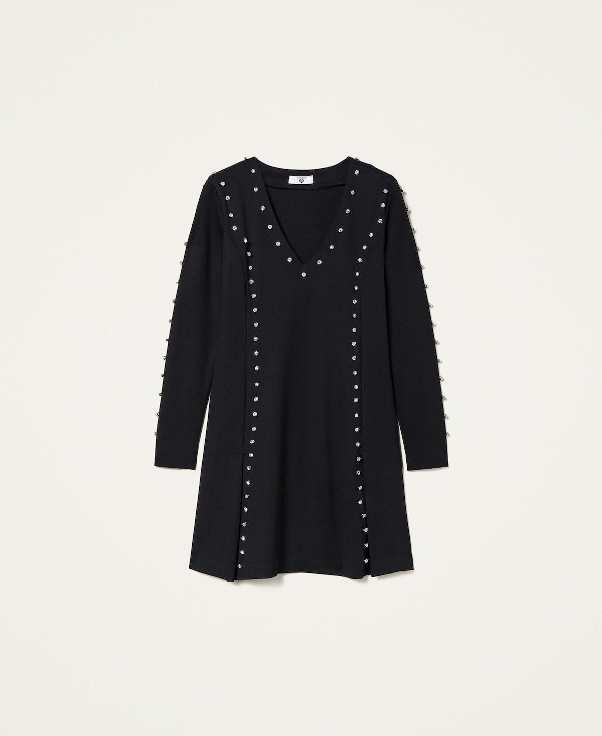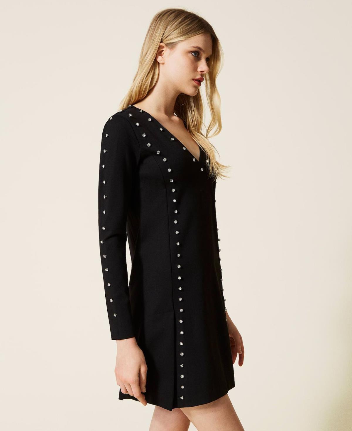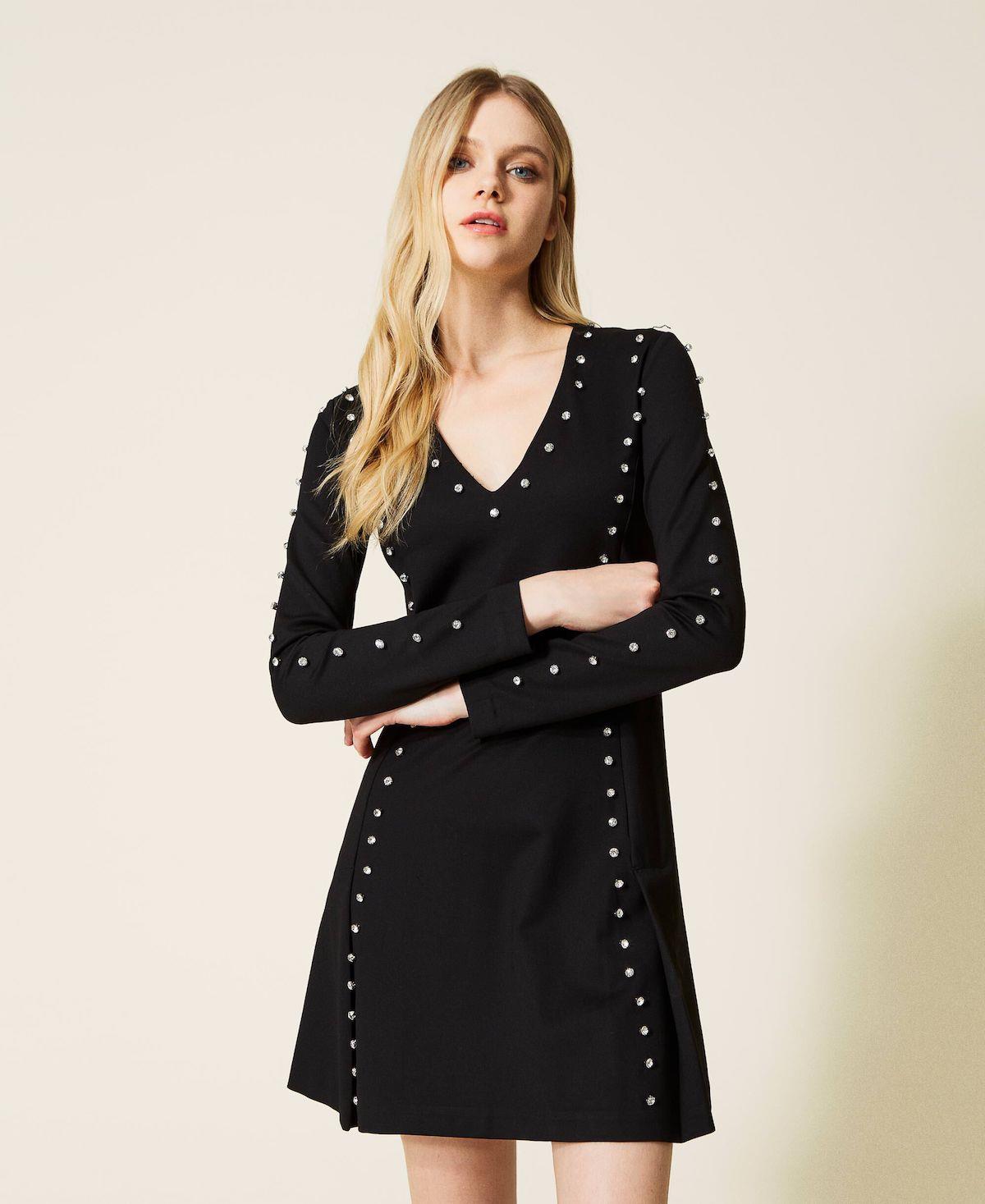 Scivolare in questo abito corto firmato Twinset ti farà sentire come una diva di Hollywood. In punto Milano con logo ricamato sul retro e tagli definiti da castoni applicati a mano a garantire una vestibilità svasata.. Lo scollo a V , maniche lunghe e pieghe sul fondo , rendono questo mini dress , con i giusti accessori , un look sia da giorno che da sera elegante ma discreto , super eye-catching ti regalerà uno stile unico.